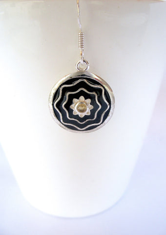 Handcrafted in sterling silver with fine hand-painted enamel work. Glossy finish. Set with a genuine citrine in the center.