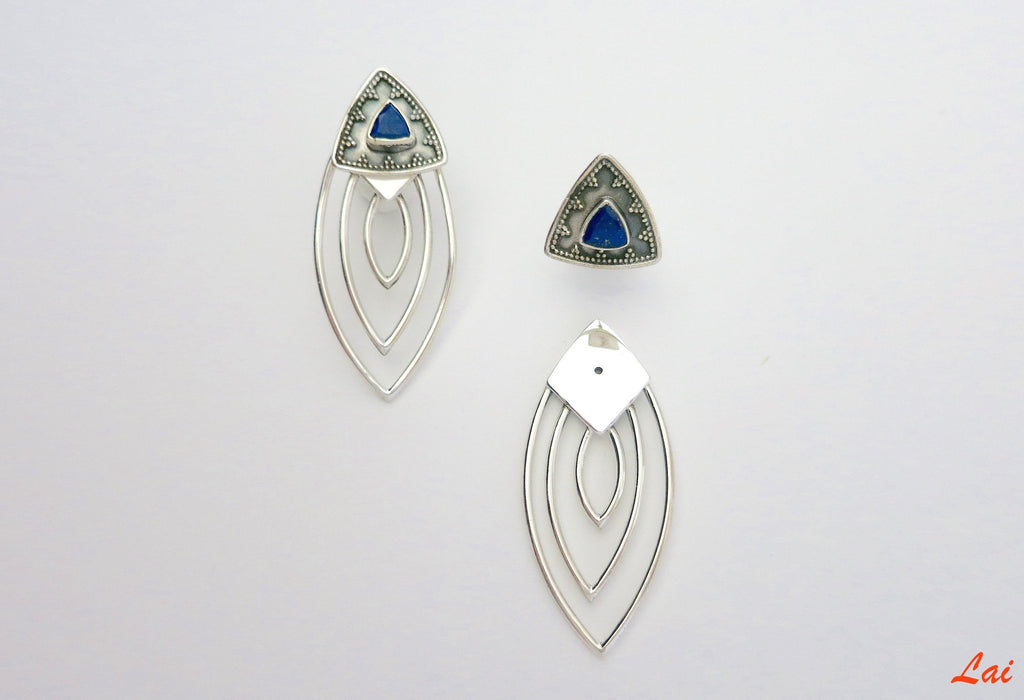 These earrings are detachable/modular and can be worn in 2 different ways: only as studs or with the jacket behind the ear lobe. [Bonus: the ear jacket can be used with any other existing studs of yours!]