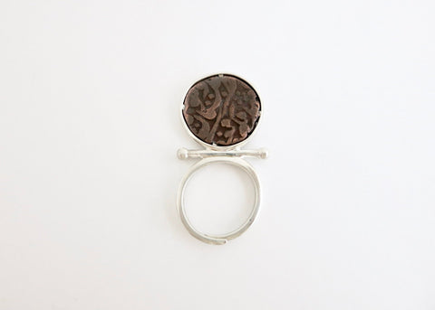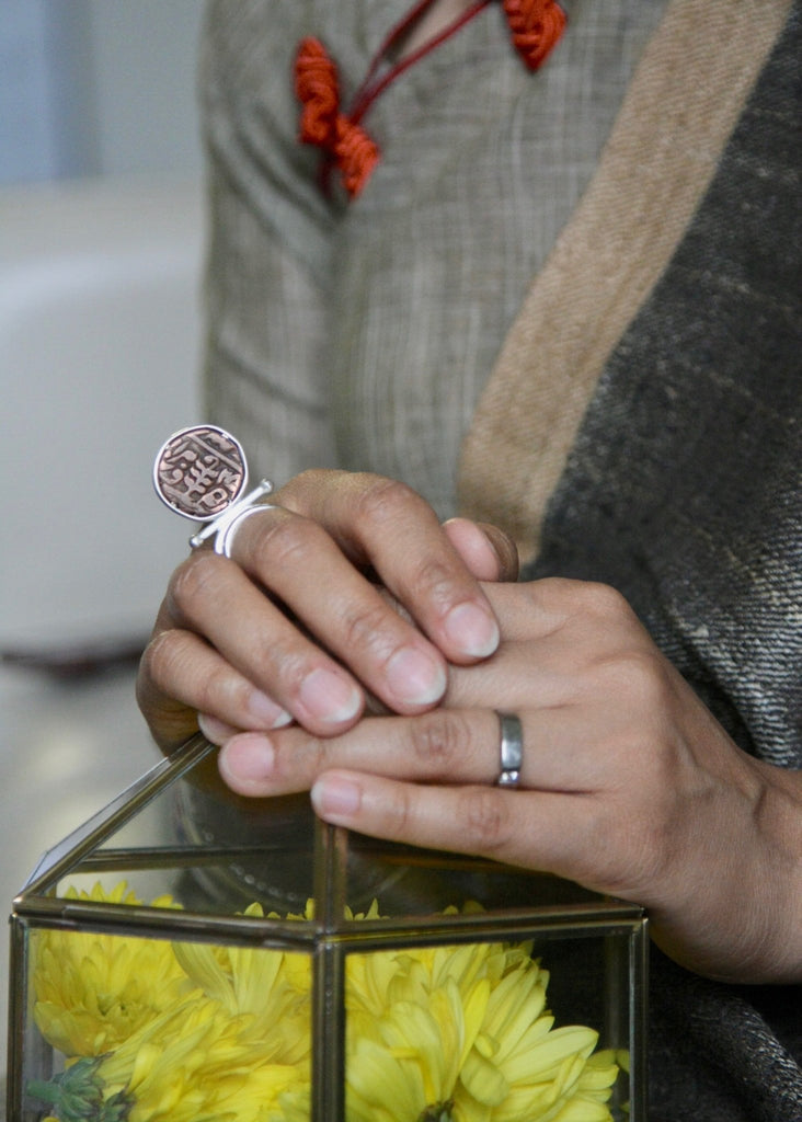 Handcrafted in sterling silver. Set with a cast replica of an antique Mughal coin ('asharfi').